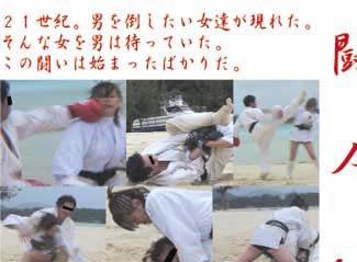 The woman who would like to defeat the man and The man who [ambushes] her. Now is FIGHT TIME!!. Martial arts Woman VS Karate man.